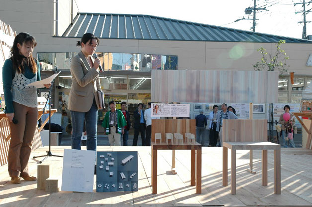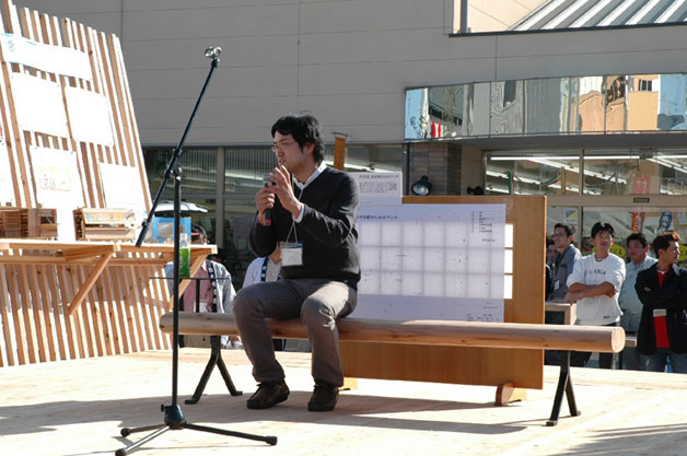 杉のコンペを開催するに当たっては、注意した点があります。ひとつは、テーマの幅を限定した点です。一見、応募者の想像力に枠をはめると思われたり、主催者の意図が色濃く反映されるものと受け取られるかもしれません。しかし、杉というスーパーマテリアルで作れるものは、小物から住宅まで非常に多種多彩です。応募者を羅針盤のない船で航海させるようなコンペにしてはならないという考えからなのです。また、テーマに副題をつけることも進化しているコンペの表れなのかもしれません。2004年のテーマは「ステーションファニチャー」で「杉の可能性」という副題をつけました。2005年のテーマは「一坪の杉空間」、副題は「杉の普及」です。それぞれ、そのテーマにおいて目指したいことを副題としています。ここでみなさん、よーく考えてみてください。「鉄」や「プラスチック」という素材だったらどうなったでしょう。一般の人たちや学生が参加しようと思い立つでしょうか? 誰でも扱うことが難しくないスーパーマテリアルな杉は、何人に対しても懐の深い不思議な素材なのです。