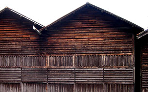 年季の入った風合いが美しい、杉板のふたご倉庫。吉野にて。 |