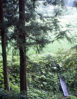 7月のヒノキ(杉の木伐採練習計画地にて)