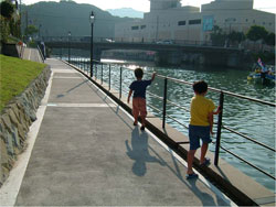 きっかけは、設計案の住民説明会で出された、地元のご婦人の素朴な意見からだった。日南市の日照は強烈なので、屋根があれば日陰で水上にいられていい。木橋の耐久性も向上するだろうと仰る。