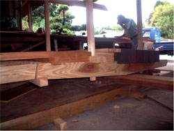 地元職人による1/5スケールの模型の製作現場。