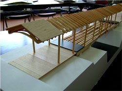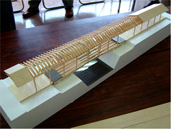 次は構造。もとより集成材で設計する気はない。繰り返すが、架橋するのが目的ではないのだ。これを契機に、地場産業である木材利用の可能性を徹底的に追求しようと考えていた。