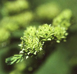 8/1、夏真っ盛りギラギラの太陽の下、まだ雄花殻をぶらさげている(右下の茶色のつぶつぶ)