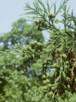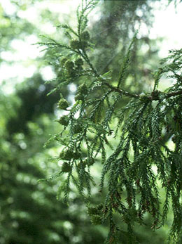この暑〜い夏の間もあいかわらず、茶色に枯れた葉と雄花殻をぶらさげて、一方では杉ぼっくりをグングン生長させていました。ある意味、すばらしい芸当をやってのけるのですが、去年の茶色い杉ぼっくりまで(少しだけですが)つけたままだったりするので、「オヤもう茶色くなったかな」なんてややこしい。それでついおせっかいおばさんぶりを発揮して、枯れたところを取りのぞきたくなってしまいます。しかし、そこはぐっとこらえて、できるだけありのままにしようと、観察だけに専念しています。(過去をひきずったままってのは個人的にはイヤなんですけどね。)