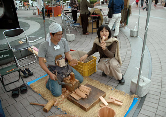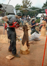 今回は、その梶谷さんが千葉県の長柄町というところで行われるチェーンソーカービング大会に出場されるという情報を得たので、これは応援に行かねば!と思い立ったわけなんですが、その日は前述の「工房からの風」の初日。チェーンソー大会はその日だけだったし、同じ千葉県だったので、その日は朝、石田さん、溝口さん、池田さんにご挨拶に寄ってから長柄町までかっ飛ばして行ってきました。何て涙ぐましい努力なんだ! でもスギダラ仲間がわざわざ来てるのに行かないわけにはいかんでしょう!