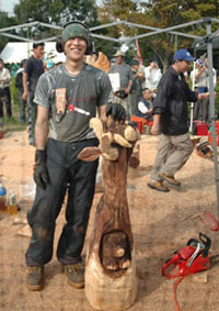 実はチェーンソーのカービング大会に行くのは初めてのことで、是非一度見てみたかったのです。会場に到着すると第2ラウンドが始まったばかり。数十台のエンジンチェーンソーが一気に爆音を奏ではじめました。