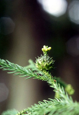 それも冠というか花輪というか、いかにも故意につけたように蕾がかわいく花びら状(ロゼッタ状ですかね)に並んでいるのです。これをみつけたときの私の驚き様というか、小躍り様を想像してみてくださいな。もうヒノキぼっくりどころではなくなったのです。それでカシャカシャとシャッターを切って、5枚しか残っていなかったフィルムがなくなりそうになって、あわててヒノキぼっくりを撮った次第です。