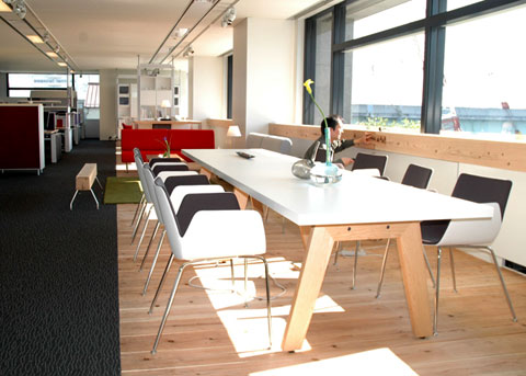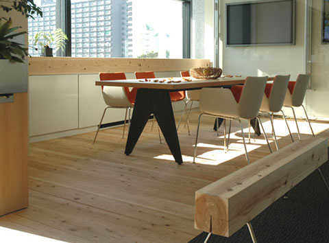 いや〜これが良いんです。ハイテクのIT機器、そしてスチール家具を杉が優しく包み込み、違和感どころか何とも言えない豊かなオフィスが出来上がりました。そして、もっとも注目を浴びる重要なポイントには我が社の家具ではなくスギダラ家具が堂々とあり未来への期待を感じさせてくれます。なによりお客様が一番素直でした。「いいね〜」「欲しい!」「製品にして」。問答無用に話が弾むのです。やはり杉の情報は日本人のDNAに書き込まれているに違いないと思ったほどでした。今らしい使い方を僕らこそ忘れていたんだと思いました。