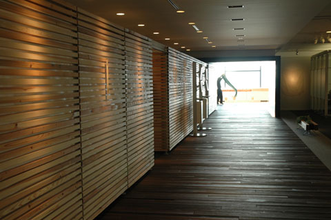 というより気がついたらもう、南雲さんにはデザインを頼むやら、床、壁、小物をスギダラケに設計を進めていたのでした。我が内田洋行チームはもはや当たり前、社長様だって何の疑問もなく、「そりゃ宮崎の方々に喜んで頂かなきゃ」
