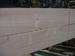 中央部分に縦方向に筋が見えます。これが「シナ」です(これは桧のシナです)。写真が上手く撮れていなくて、すみません。ちょっと分かりづらいです。どうですか?手術の跡っぽいでしょ?