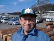 原木市では番号入りの帽子を被ります。