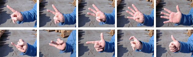 「1」まあ普通です。「2」ピースです。 次が「3」真ん中3本使います。「4」これも普通ですね。「5」当たり前ですよね。