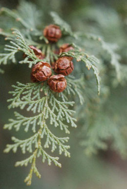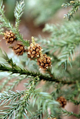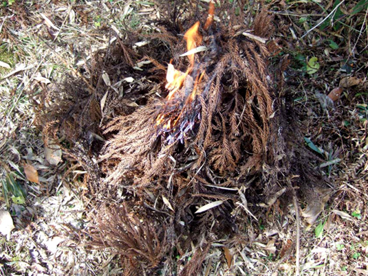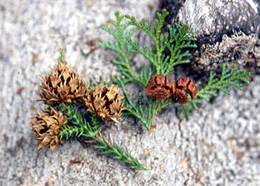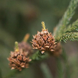 ……つやつやだったヒノキの実は、乾いた赤茶色になってはじけていました。