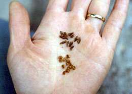 自然の状態では種子はどのようにとびちるのだろうか。もしかしてもうスギぼっくりはカラっぽかな、とひとりごとをつぶやきつつ、ツン ツン、とつつくと依然としてひらべったい種がこぼれます。こぼしながら、「ああ、そうだ」とヒノキぼっくりのことを思い出しました。
