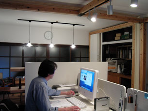 さて、決心したものの、どういうスギオフィスをつくろうか? 自分で確信をもって決められたのは杉の床を張る、ということまでだった。昨年リフォームした実家では杉の床を張り、その心地よさはすでに実感済みだったからだ。しかし、それ以外、杉をどう使うか現実的な方法は浮かんでこない。予算も無いし、杉のJパネルをカットしてデスクに仕立て、チェアだけ新調しようかなー、なんてことぐらいしか考えつかなかった。ここはやはり、プロに相談するのが一番。そうそう、すぐ近くに頼れるスギ仲間がいるのだからと、我らがスギダラ本部、ウチダラ洋行・若杉部隊に相談を持ちかけたのだった。