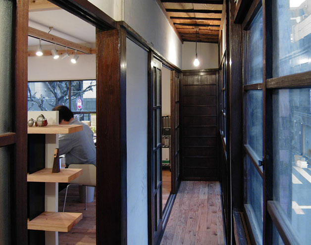そんな漠然とした思いで、もしいい場所があればなー、とこれまたぼんやりと自宅近辺の空き物件を散歩がてら見歩いていた中、昨年末この物件と出会った。日本橋人形町の商店街「甘酒横丁」にある木造2階建の古い商家で(60年代ぐらいの建物かな?)、以前は住まいとして使われていた2階が空いていた。ひさしく使われておらず、床は傾き、ぎしぎし音がするが、昔の木製建具や縁側のように部屋の周囲を回る廊下などの古さ加減と不思議な間取り、好きなように改装してもいいというゆるい賃貸条件が気に入り、年末年始考えた上でとうとう借りることを決心したのだった。