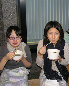 いつもこういったイベントの素敵な飾りつけやセンスある食事の盛り付けをやってくれる本部スタッフのオクちゃん(左)と今回の会場のデザインと設営を担当した本部事務局のヤノちゃんです。会員証の送付はこのヤノちゃんがやってくれています。皆様、お見知りおきを・・・