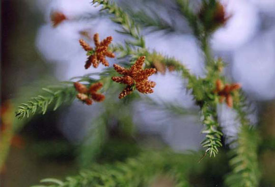伐採計画練習予定地の冠杉には雄花がちらほら