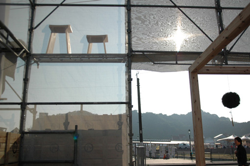| 完成したスギダラ館。内側からは透けるように外が見えます。 | ||||||||||||||||