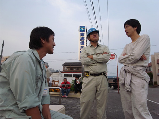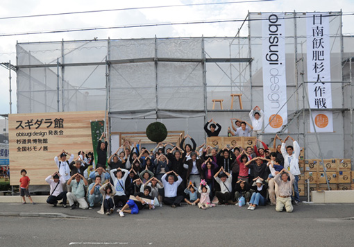 | 日南飫肥杉大作戦2009にて、組み上げの準備をする筆者(真ん中) | ||||||||||||||||