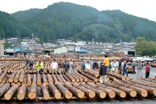 | 日本一の丸太と人が集まる場所を目指して! 原木丸太市の風景 | ||||||||||||||||