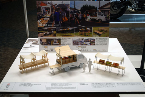 今回、この軽トラ屋台「K mobile」が、グッドデザイン賞ベスト100、さらには中小企業庁長官賞を受賞することができましたが、応募した当初はこんな結果は全く想像できていませんでした。それはこの軽トラ屋台に自信がなかったわけではなく、全国のオールジャンルの3000件以上のデザインが一同に介するグッドデザイン賞の中では、地味な存在になるのではないかと思ったからです。 でもそれは逆でした。軽トラ屋台が応募したユニットは、「個人用の移動機器・設備」という分類で、いわゆる自動車の類とそれに関連する機器など、メカニカルなデザインが集まるユニットだったので、軽トラ屋台のようにソフトにも関わる応募はほとんどなく、展示会場でも目立つ存在でした。とはいえ、ベスト100、中小企業長官賞という特別賞を与えられることになるとは、グッドデザイン賞がこれからのグッドデザインの指針を示すことになるので、想像だにしていませんでした。 |