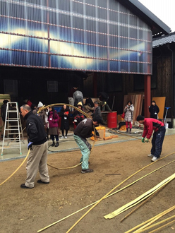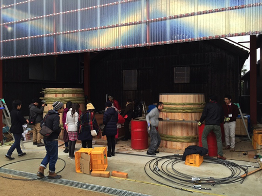 2009年のスギダラ関西・吉野ツアー&フォーラムから5年が経ちました。 フォーラムの後、吉野山でのスギダラな熱い夜を過ごしました。この時に「やっ樽で〜!桶!」(やるぞ〜!OK!という意味です!)というフレーズ(掛け声)が誕生しました。吉野林業の出発点である「樽」と「桶」の材料としての吉野杉を見つめ直す契機となり、その後の活動において大きな原動力となっています。 吉野杉の特性を最高に引き出した製品が「樽」と「桶」です。時代の変遷のなかで、昭和の高度経済成長を迎える時期には、木製の樽や桶の代替品として、プラスチックやFRP、琺瑯、ステンレスが登場し、日本人の生活様式の変化もあり、吉野杉の「樽」や「桶」の活躍する場は少なくなりました。ただ、建築材としての需要が急増したため、吉野林業全体としても、時代の流れで仕方のない事と捉え、僅かに「樽」の需要が樽酒の香り付けのために残っただけでした。 平成に入り、建築材の需要低迷、原木価格の下落、山林の荒廃が進む中で、吉野が目指す方向のひとつとして、ふたたび「樽」と「桶」に着目するきっかけを与えてくれたのが、スギダラだったのです。2009年以降、木桶復活プロジェクト、銘木と銘酒のまちフォーラム、吉野貯木まちあるきの各事業においても、「樽」と「桶」がキーワードとなり、「木と生きる、木と暮らす」という想いを吉野から発信しました。 月刊杉53号「特集:吉野」 木の樽や桶は、今の時代、素晴らしき"遺産"と思われがちですが、やっぱり木の方が良いと原点回帰の動きが始まっています。今回は、現在進行中の「やっ樽で〜!桶!」をご紹介します。 瀬戸内海の小豆島は国内有数の醤油の産地であると同時に、日本全国の現役の仕込み用の木桶の半数、1000本近くを抱える"木桶の王国"でもあります。月刊杉でも以前にご紹介しましたが、この地に蔵を構えるヤマロク醤油の五代目山本康夫さんは、本物の醤油は木桶でなければ出来ないという信念で、2009年から新桶の導入を進められています。 月刊杉89号「小豆島、ヤマロク醤油さんの木桶」 醤油は和食の基本ですが、日本人の食生活に浸透したのは、木桶の存在があると言われています。木桶の製造法が確立するまでは、醤油の大量につくる事は不可能で、いわゆる上流階級の食事にしか使われなかったそうです。大きな木桶が出来てはじめて、醤油が一般に広まりました。そして、江戸時代に樽の製造法が確立することで、輸送しやすくなり、日本全国に広がり、和食の文化が形成されていきました。その樽と桶を支え続けたのが吉野林業であったのです。 昔、醤油の仕込み桶は、使えなくなった日本酒の仕込み桶をリサイクルしてつくる事がほとんどで、醤油屋さんが新桶をつくる事は無かったそうです。日本酒で20年、その後、醤油や味噌で100年というサイクルが地域内で確立していました。 しかし、この50年で日本酒の醸造容器が木桶から琺瑯やステンレスのタンクに変わり、醤油屋さんがリサイクルできる木桶が無くなり、さらに、木桶の需要が無くなった為、木桶職人が激減しました。日本全国の醤油屋さんで使われている2000本と言われる木桶の寿命は確実に近づいています。 このような状況で、山本さんは次世代に木桶仕込みの醤油を伝えるため、2009年に新桶12本を導入しました。仕込み用の大桶をつくる、数少ない桶屋さんである大阪・堺のウッドワーク(藤井製桶所)さんが手掛けられました。2013年には桶づくりの技術継承を目指して、山本さんと同級生で大工の坂口さんを中心に、藤井製桶所さんの指導のもと、木桶製作技術を学び、新桶を自らの手でつくりあげました。材料はすべて吉野杉です! そして、2015年1月、新たに4本の木桶が完成しました。新桶づくりの最中は、全国から醤油屋さんをはじめ、いろいろな業界の方々が見学に訪れました。山本さんは、全国の醤油屋さんが木桶づくりの現場に立ち会うことで、桶の基本構造を知ってもらい、少しぐらいの修理は地元で出来るようになれば良いとお考えです。桶づくりの技術をもう一度、世の中に広めるための一歩です。 本物の醤油は、木桶でなければできない。 みんなで本物の醤油を味わいましょう! |