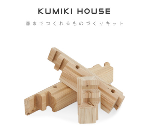| 国産の杉材でつくられている「KUMIKI」は、家具をつくることが出来る「KUMIKI LIVING」と建築までつくることが出来る「KUMIKI HOUSE」の2種類。 | ||||||||||||||||