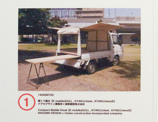 通常の補助事業だとこれできれいなパンフレットを作成して終わりなのですが、この事業は、次を狙います。グッドデザイン賞です。詳しい話は、ナグモデザインの若きエース出水さんの章にお任せしますが、南雲さんは、ここでも指令を出します。「グッドデザイン賞のパネルは、やっぱ!軽トラ市の写真だよね!!」 |