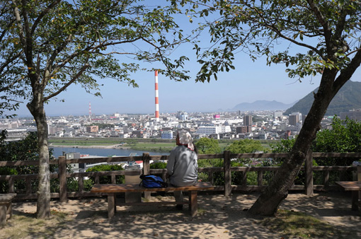 土井さんからメールをいただき、その設置場所が延岡城趾の本丸跡にベンチを設置したいという話を聞いたとき、すぐに引き受けようという気持ちになった。 日向市のプロジェクトに関わり始めた25年ほど前、県の中村さんにつれられ始めて訪れる。現在は市のシンボル城山公園として親しまれているが、元々大瀬川と五ヶ瀬川に挟まれた天然の要塞、加えて千人殺しの石垣の男性的で力強い石積みに圧倒されたことを記憶していて、とても良い場所だという印象があったからだ。その後本小路通線の整備の時も改めてゆっくりと訪れたが、本丸跡から眼下を見ると、手前に大瀬川、その向こうに旭化成の煙突始め延岡市を一望できるとても気持ちのいい場所だ。 今回改めて海野さんに連れられ、土井さんと現場でお会いする。設置場所のイメージは予想通りだった。情緒的な鐘撞き堂や防犯灯のトラスも以前のままであった。 |