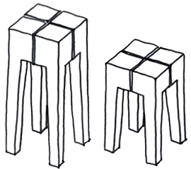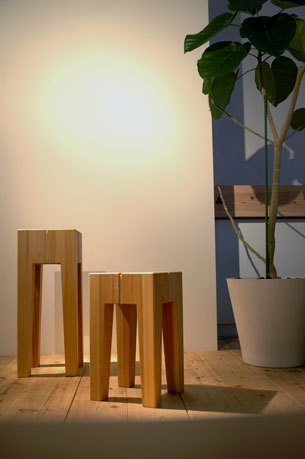 最初に杉のスツールと聞いた時、角材の束に腰掛けるイメージが浮かびました。そして、それだけでは視覚的にも重量的にも重いので余分なところを削り落とそう、というコンセプトを考えたのです。杉の暖かさや力強さを残しつつモダンな空間にも合うように、という目論みだったのですが、はたして……。
