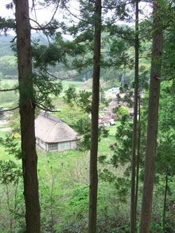ここには4棟の茅葺き民家がありますが、残念なことに2000年4月から無人となり荒廃がすすんでいました。江戸時代の面影が集落単位で残っているところは大変貴重であることから、4棟の保存と再生を図るために「手這坂活用研究会」が2001年に発足、桃の植樹、屋根の葺き替え、家屋の補修などを実施してきました。