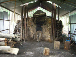 さて、次に訪れたのは能代市の常盤地区。米代川の支流の常磐川が流れる地区にある毘沙門憩いの森という公園に、明杉さんが地区の方達と作った炭窯を見に行きました。この公園にはキャンプ場、バンガロー、アスレチック、多目的広場、テニスコート、