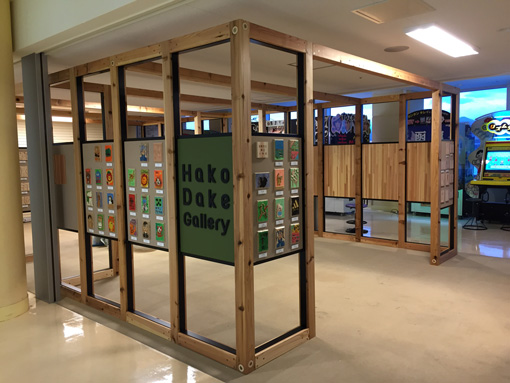 | 一時休止状態だった遊具開発は再開され急ピッチで進めたれた。強度試験や試作による問題点の洗い出し、その解決方法を話し合う検討会などを経て、いよいよプランが出来上がった。函館空港ビルより「ゲームセンター機器の一部を残したい」という要望があり、全体スペースの半分を木製遊具コーナー「ハコダケヒロバ」、もう半分のスペースにゲームセンターを残すことになった。木をふんだんに使うコーナーにゲーム機器が見えるのはカッコ悪いので、隠れるよう壁で囲ってしまおう、せっかくなら壁に展示物が設置できるようにと「ハコダケギャラリー」が考えられた。このハコダケギャラリー壁面には、特殊材の「ブルテンボード」が使われている。この材が使われた経緯には様々な問題があったため、この時から材をチョイスしたパワープレイスの坂本さんが「ブルテン坂本」と呼ばれるようになった。(詳しい内容は本人に聞いてください)壁の展示物については、地域の子どもたちに関わりをもってもらおうと、つーさんが尽力し、周辺等の小学校6校による木工レリーフ作品が展示されることになった。展示されるまでには、つーさんvs教育局の熱い戦いがあり、よく愚痴を聞かされた。(笑) | ||||||||||||||||