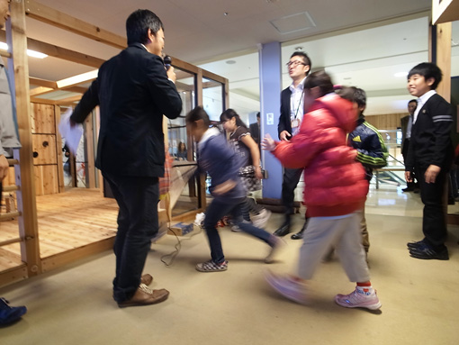 | その後、秋田バスターミナル等の先進地視察や検討会を重ね、3階の閑散としたスペースに人を呼び込みたいとの函館空港の意向を踏まえ、ゲームセンターがあった所に遊具を作る計画となった。当初はCLTで作るなどの案もあったが、現実的ではなかったため、ジャングルジムのような構造で作る方向で進められた。柱に丸棒を突っ込む構造の納まりにパワープレイスメンバーは相当頭を悩ませながらも何とか検討会までに作り込んで来てくれた。そのプレゼンの日に事件?が起きた。若杉さん・小林さんのプレゼン後に、オブザーバーのひとりがおもむろに「このジャングルジムは子どもの目線で考えていますか?大人の都合で考えていませんか?」と言い出した。私は心の中で、パワープレイスがどれだけ大変な思いをしてここまで来てくれているのか、あなたは分かっていないだろ!東京おもちゃ美術館も手がけるプロ集団、子どもの目線も、もちろん分かって作っている!と心の中では思っていたが、それを口に出来ず、沈黙が続く…そんな凍りついた雰囲気のなか、若杉さんが口を開いた。「そもそもジャングルジムで進めてきた訳じゃないから…やめちゃいますか!」この一言に皆一瞬「え"〜」と思ったが「おぉ!いいね!」ということで一致団結。さすが若杉さんだ!と思える一面だった。その後、開発が加速を増していく…予定だったが、想定外?のありがたいお仕事が出てきたため事業は一時休止となる。それは函館空港3階で、使っていないスペースを多目的ホールとして使うために改装する計画が持ち上がったのだ。せっかくだから、この検討メンバーで地域材をふんだんに使った空間にしようという話になった。同じ頃、別件で札幌に出張し、北海道庁林業木材課他の方々と飲む機会があった。私は、何気なく林業木材課の担当に「函館空港で木質化の計画が上がっているんですよ〜」と言った。その担当者は「その話、詳しく聞きたいから明日、本庁へ来てくれ!」と…二日酔いで本庁へ行き話しを聞いたら「補助残があるので、多目的ホールに使える」ということだった。本庁を出てスグ、石田次長へ電話した。 鈴木「あの〜、多目的ホールの整備に補助出るみたいなんですけど…」 石田次長「いいですね!」 鈴木「それで…事業に乗るかどうかの返事を今日中に欲しいんですけど…」 正直この時、自分もさすがに無理だろうなぁと苦笑いしながら電話した記憶がある。 石田次長「えぇ〜!それはさすがに無理!!」 と案の定言われたが 鈴木「せっかくなので…後で取り下げてもいいので、エントリーだけでも…」 その日のうちに何回か連絡を取り合い、最後は 石田次長「ダメかもしれないけど、とりあえず…」 と渋々了解を得たのち、なんと申請は通ってしまった。しかし、着手からオープンまでは約3か月程度しかなく、この間遊具コーナー開発は休止状態となった。7月末にオープンしたこの多目的ホールは、「ハコダケホール」と命名さることとなった。この当時はハコダケ≠ヘ間違えだと思われないか?函館ホールじゃダメなのか?という議論がよく行われていたが、箱だけ、箱だらけにしよう!という当初のコンセプトを貫き通した結果、今では誰もその名を疑う者はいなくなった。このハコダケホールはトドマツインフィルや道南スギ・カラマツの浮づくり3層パネル(一応CLT)、林産試験場が開発した浮づくり色彩合板等の新技術が盛り込まれた素晴らしい空間として7月末に無事オープンした。 |