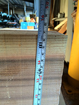 そして乾燥(住宅部材と違うので6〜8%程度まで含水率を落とします)なんですが、これだけ年輪が密になっていると乾燥させるのがかなり大変なんですね。通常よりも時間が掛ったようです。 |
