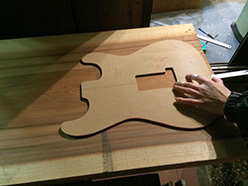 我々業界人からすれば「どーよこれ!」と言いたくなる逸品。 私自身の材木屋としての仕事はここで完結しているのですが、本当のギター造りはここから。 まずは木取り。 |