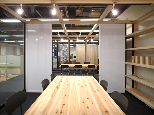 当時はwoodinfillも開発中の商品だったと思うのですが、とにかく勝手がわからず、どのようにプランニングも構造もほとんどわからず、しかも時間も限られているという、いつも通りがんじがらめで追い込まれながら立ち上げをしていったのです。その甲斐もあり、杉だらけの空間も新しく、テーマに沿った空間に仕上げる事ができました。