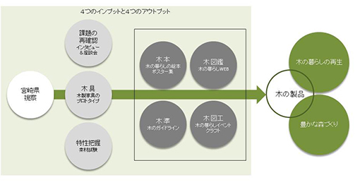 昨年、3月末より良品計画・パワープレイス・内田洋行の3社は、林野庁の補正予算を受け、「木の暮らしの再生」「豊かな森づくり」を目的に、国産材を活用した家具づくりの課題と解決方法を検討・実施しました(以下、林野庁プロジェクト)。このプロセスは、杉を用いた家具作りへの取組姿勢の確立とメンバー間の絆を深める役に立ちました。 |