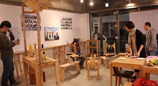 | つくれる家具とナガスギのコラボによる屋台空間でにわかに宴会が始まる。 | ||||||||||||||||