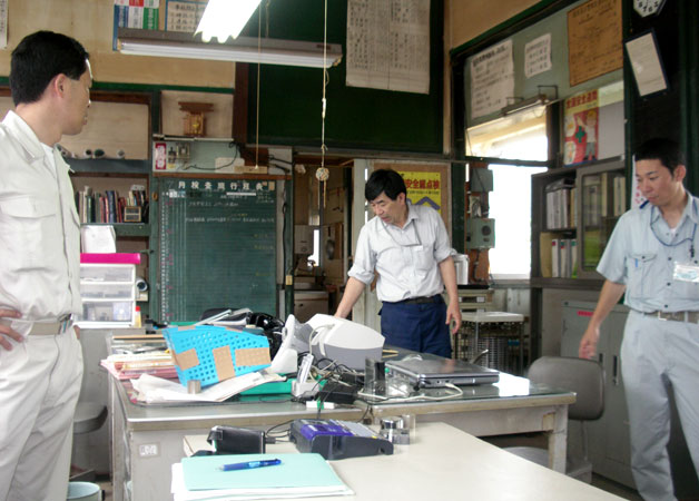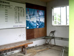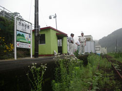 しばらくぶりで訪れた上崎駅。 列車も通らず手入れもない。訪れる人もなく線路にはびっしりと雑草が育っていた。伐採でお世話になったヤスシさんがひょっこり顔を出してくれた。「この草刈っておきますよ。」さりげなく言ってくれた一言に勇気づけられる。保線区長決定だ。 「昭和12年だったと思いますよ。ここに高千穂鉄道が通ったのは・・・古い写真があるので今度探しておきます。」そう言って遠くを見つめた。しかし上崎に停車場ができたのは昭和32年になってからことらしい。線路は通っていたが戦争を挟み20年間この地に列車は止まらなかったことになる。駅が出来た時の喜びは想像出来る。そして駅舎が出来たのはそのさらに後のことだ。 つまり、高千穂鉄道は、昭和32年頃から昨年までこの地区と外部を結ぶ貴重な交通機関であった。幸い(と言っていいかどうか)上崎橋が出来ることで、地区は国道に直結する。陸の孤島とおさらばだ。しかしそれだけではすまない繋がりがこの駅はあるはず。上崎橋こんにちは、上崎駅さようならではあまりに寂しい。 ふるさと協議会の甲斐さんもやってきて、振興局のみなさんとしばらく現場を見て回った。駅舎は意外と汚れていない。ちょっと手を入れればすぐきれいになる。時刻表などは運行当時のままだ。先ほどの会議の最中にどなたかが「乗車券を杉でつくりましょう」と発言された。素晴らしい。「乗車してくれた人にはミカン10個!いや3個!5個くらいがいいんじゃない」話が弾む。 「駅舎をきれいにしてプラットホームにベンチをおいてビアーガーデンもいいねぇ。」とボク。 あとは線路だ・・・ 高千穂鉄道の保線基地、「川水流(かわずる)駅」は上崎駅の隣にある。線路の使用に関してはここに行けば相談してくれる。植村さんの案内で支所も方と一緒に連れて行ってもらった。