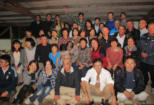 そういえば、今回、長谷川さん夫妻の 娘さんがこの日のために県外の大学から 帰省していて、将来は上崎に戻り、地区 のために仕事がしたいと言っていた。 手すりに使うスギの伐採や玉切りに参加 していたあの時の小学生が、頼もしく なっていた。 |