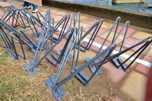 鉄の脚はベンチ1台に対して、左右2ヶ所に取り付けるのですが、事業予算からして1ヶ所1000円以内で作らなければなりません。脚は変形のM字のように3次元に曲げた鉄の丸棒を鉄板のベース板に溶接するのですが、「鉄板のレーザー加工はします。」などというちゃっかりした会社は有りましたが、鉄の丸棒を曲げて溶接する会社は、名乗りを上げる会社が無かったのです。パイプ椅子を作っているようなメーカーであれば、3次元曲げも容易にできるのかも知れませんが、鹿沼地区にはそのようなメーカーはありません。見た目のスマートさと、現実の加工の難しさのギャップに、怖気づいてしまう会社がほとんどでした。実際には、予算的な部分も厳しいものがありました。