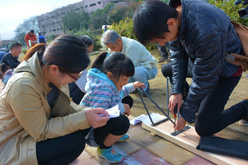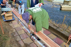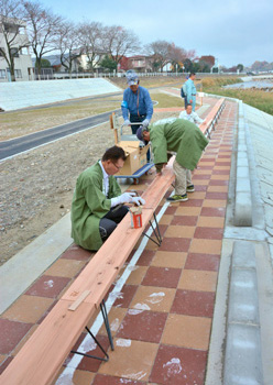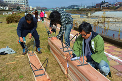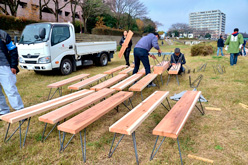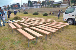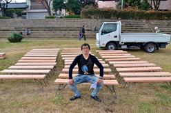 2016年11月20日、鹿沼に467脚、合わせて700mを超えるスギのベンチが並び、ギネス記録に挑戦しました。 鹿沼商工会議所が主催で開催したこのイベント。座面の木部も脚部の金物も鹿沼で製作し、町の人達で組立て、1脚3000円という破格値で持ち帰れるというイベントでした。 当日は地元の人達が約1000人集まり、みんなでベンチを作って記念撮影をし、木の町、金物の町鹿沼を象徴するようなイベントになりました。 |