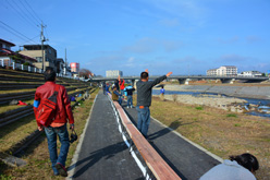 ドローンでの空撮の映像はyoutubeにも上がっているので是非見て頂きたい。 今回の話を最初に聞いた時はまたエライ企画を立てちまったもんだ。と思っていたのだが、当日地元の人達がこんなにも多く集まり、老若男女が協力して組立て、みんなで笑顔で記念撮影をしたあと、自宅に持ち帰り、町のみんなで使って行くという風景はとても素晴らしいものだと感じました。 実はこのベンチのギネスに挑戦は2回目で、15年前?に555mのベンチを作り記録を取ったのだが近年どこだかに長さで抜かされたので、また抜き返そう!と言う事で行った事らしい。 |