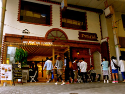 商店街再生のプロジェクトは2014年4月にかつて賑わっていた喫茶店の空き店舗をリニューアルオープンしたABURATSU COFFEEを皮切りにスーパーマーケット跡に屋台村(あぶらつ食堂)、空き地にコンテナ店舗(ABURATSU GARDEN)などいわゆる遊休不動産を活用した店舗をオープンさせ注目が高まっていった。しかしそこでぶつかる壁が「そもそもの消費人口の少なさ」である。小さいまちながらも供給と需要のバランスを如何にとっていくか、が大きな課題であった。 |