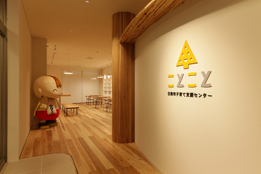 今回2年間をかけて設計を担当させていただいてきた日南市の子育て支援センターは、私は建築的なこと、インテリアデザインを主にやって、奥ちゃんは家具やおもちゃ、グラフィックのデザインを担当しました。 オープンニングセレモニーの後に子供たちがどっと流れ込んでくる、芋掘りの芋を競うように引っ張り出すお姉ちゃん、自慢げに鰹を釣り上げる小さな子、それは取りすぎだろう、というくらいカゴにキンカンと日向夏を詰め込む兄弟達、たまごプールですっ転ぶ男の子、それをベンチで眺めるお母さん、みんなひゃーひゃー言いながら楽しんでいました。そんな光景をつくりあげていたのです。 |