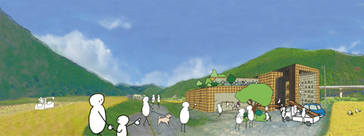 人々が多く訪れる南向きからは、大きく開いた建物が見え、北側の集落からは、棚田と屋上がつながることで、風景に溶け込む仕掛けがなされており、私たちが掲げる「やがて風景になるものづくり」につながっている。一番、見晴らしの良いところは、森の食卓となる。来年の5月には、応援に来てくださったツギテノミカタたちと、おもいっきり、飲んで歌いたい。11月の半ばから、いよいよ建て方が始まる。その時は、どんな風景が広が |