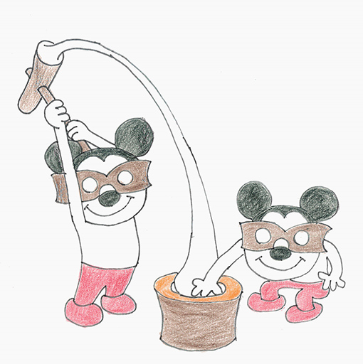 「あの仮面のネズミさんたち、とても上手ですね。寝ずみ練習してるのかな」