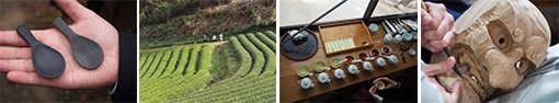 | ツアー初日は、五ヶ瀬ワイナリーから阿蘇山を眺めるところから始まり、「宮葡ヶ[」で宮風コさんから釜入り茶について学び、高千穂町五ヶ村で神楽面を彫っている工藤さんの話や60歳からの村おこしを実行されている佐藤光さんの話を伺い一日目を終了。 | ||||||||||||||||